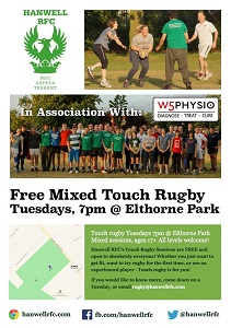 Hanwell RFC's FREE Touch Rugby is back every Tuesday in Elthorne Park (7pm).
