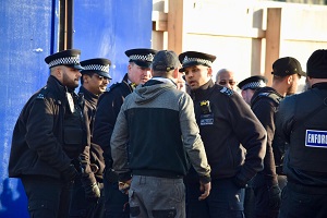 Photographer, Liz Jenner was on scene and witnessed the eviction. She says she spotted the enforcement officers arriving in a van at 1.40pm.