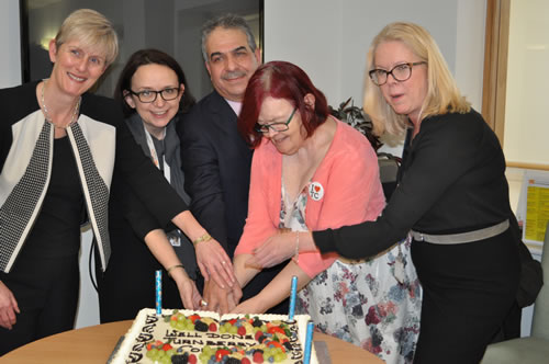 Judith Finlay, executive director for children, adults and public health enjoyed a celebratory slice of cake when she joined residents and staff at the home yesterday (Wednesday 8 March).