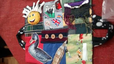 "I am asking any wonderful knitters/crafters (and haveagoers) for some small Twiddle Mats to rest on someone’s lap, about the size of a regular cushion cover, Knitted or Fabric with some interesting things to fiddle about with (sewn on very securely.) Even small knitted animals or teddies would be just as welcome, it will be a great way of using up any odd bits of wool or fabric scraps.''