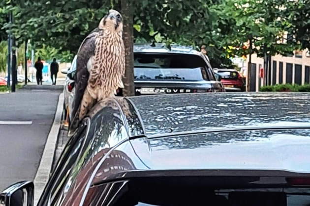 One of the young peregrines was observed on top of a car. Picture: Ealing Hospital