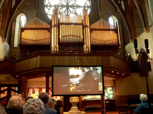 We will have our ‘big screen’ projection system, so that everyone can watch the organists playing, as well as hearing them.