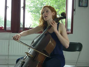 What should have been a duet turned in to a stunning solo performance by Laura Victoria as her playing partner Sarah-Jane Miller was too unwell to travel to OPEN Ealing for the June First Friday concert. The lunchtime audience was treated to Laura’s soaring voice and highly skilled cello playing.