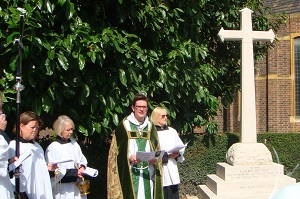 The congregation gathered outside, and the choir sang the haunting Oculi Omnium as the vicar Justin Dodd censed the memorial in memory of the Men and Women who have given their lives for others in all wars.