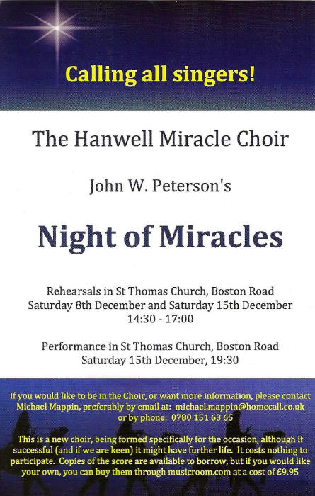 In the absence of a ‘community’ choir locally, former Classic FM presenter, and now St Thomas’s organist and choirmaster, Michael Mappin decided to see if there was any benefit in putting together a ‘scratch’ choir to perform John W Peterson’s ‘Night of Miracles’.