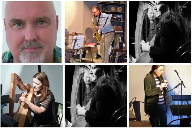 Sheila Moylan’s unique combination of traditional Irish harp with the smoky blues texture of her alto voice makes for a bitter-sweet experience. She reinterprets traditional songs and gives a folk slant to modern songs. Martin Lau’s improvised flute floats over the top, resulting in a captivating multi-layered performance.
