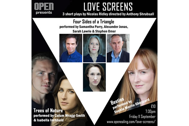 Love Screens is a new production presented by Open Ealing comprising three short plays written by Nicolas Ridley that explore those moments that may alter the course of love and life.