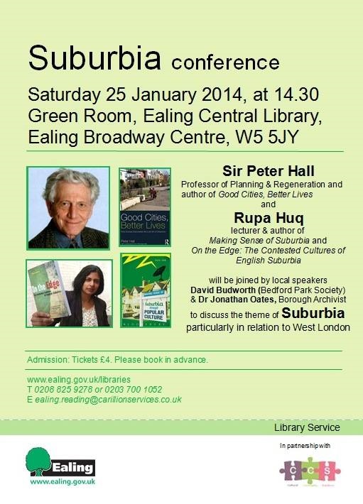 A local history conference on the subject of suburbia with particular reference  to west London will take place this Saturday 25th January at Ealing Central Library from 2.30.