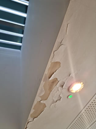 Water damage on a ceiling at Doniford House. Picture: SHAC