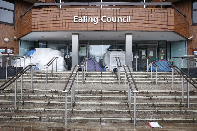 However, in recent weeks, the front of the building has been cleared with some possessions sitting across Longfield Avenue and a tent filled with rubbish dumped on the pavement of New Broadway. Local Democracy Reporting Service has been monitoring the entrance to the council offices attending the site a week before it was cleared on 22 February, speaking with those who had taken shelter there.