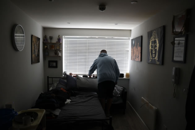 Paul Philpoot in the room the landlord charges £1,200 a month for. Picture: Facundo Arrizabalga/MyLondon