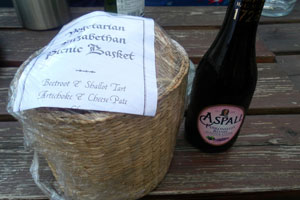 At points during the play, I am distracted by the variety of delicious breads and toasts in my picnic basket and tuck in to the very good artichoke and cheese pate, followed by a buttery beetroot and shallot tart. For Elizabethans, ale was often cleaner than water. Profiting from their misfortune, picnic-ers drink the complimentary Aspall cider.