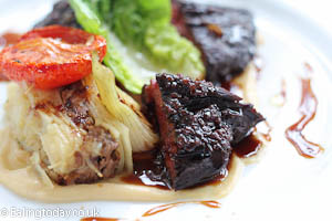 Beef Onglet Oxtail Boulangere Tomato Grelot Onions Onion Puree Sauce Bordelaise