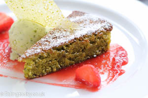 Pistachio+Olive Oil Cake Macerated Strawberries Pistachio Ice Cream Pistachio Glass