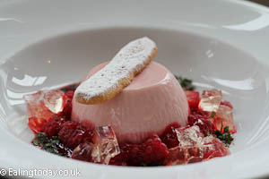 English Raspberry Panna Cotta Breton Biscuit Mint Moscato D'Asti Jelly