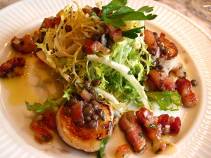My partner choose the the seared scallops (£7.80) – which were delicately cooked and melted in the mouth (having nabbed a bit I can vouch for this). They came with salty bacon lardons and a power packed puy lentil, tomato and garlic dressing which added the taste interest to the dish. He quibbled that he would have liked more scallops (he got three) - but I reminded him this was only a starter!
