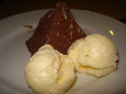 Italian chocolate and vanilla ice cream (£3) for the son and a chocolate pyramid with ice cream (£4) for me along with a power packed expresso (£1.30) rounded up the meal nicely.