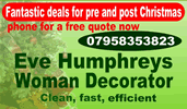 Spruce Up Your Home In Time For Christmas! Eve Humphreys female interior / exterior decorator - clean, fast, efficient and offering fantastic deals for pre and post Christmas. Phone for a free quote now on 07958 353 823. www.evehumphreys.com