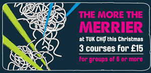 Break from tradition this Christmas and swap your turkey for chicken satay and your figgy pudding for banana fritters. Visit www.tukchoealing.co.uk for full details and book your table today.