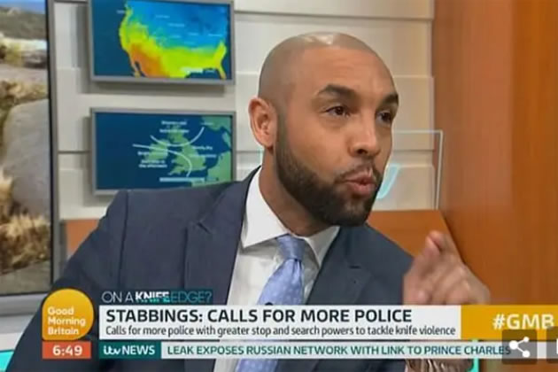 Alex Beresford on TV talking about his views on knife crime