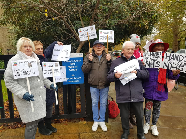 Save Our NHS campaigners at Parsons Green Walk in Centre (third from right) Jim Grealy