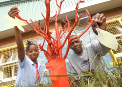 The aim is to foster understanding between the generations. Children invited their grandparents to attend the event and to put their suggestions for the garden on paper leaves to hang on a wooden 'wishing tree' at the centre."
