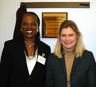 Justine Greening MP with Roehampton Citizens Advice Bureau Manager .......