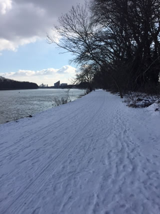 Snow falling outside The Boat House