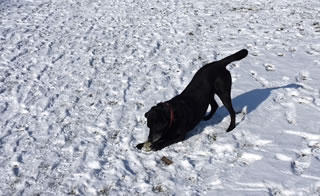![]() PutneySW15's lab loving a frozen snow/tennis ball found on the common |