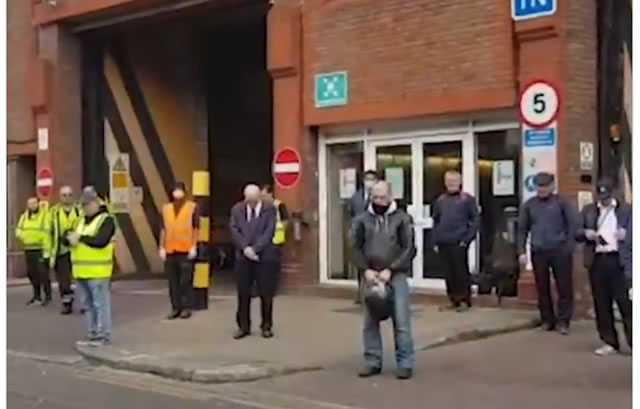 Transport workers based at Putney Bus Depot held a minutes silence on the morning of Friday 17 April in memory of fellow workers who have lost their lives to coronavirus.