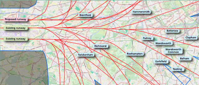 The proposal is to turn Heathrow into a three-runway 'hub' airport and would involve adding more flights to the existing flight paths, while also creating new routes over areas of South West London that were previously unaffected.