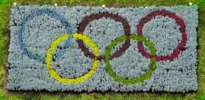 The designs measure four metres by two metres and depict Olympic themes. They have each been created using around 3,000 plants including altermanthera, echeveria elegans, senecio serpens, sedum gold mound, herniaria glabra and helichrysum white wonder.