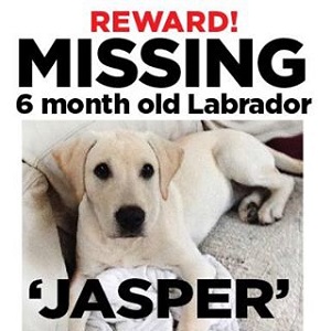 Jasper, a six month old Labrador puppy ran off on Weds Oct 15 near Acton - he's still missing and his owner is offering a reward for his return.