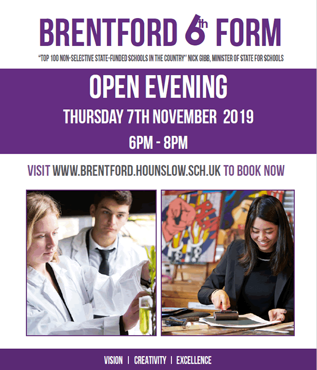 The open evening is an opportunity for parents and their son/daughter to discover what ‘Brentford 6th Form' has to offer. Come along and meet students both the past and present, hear about the school successes and soak up the atmosphere of a friendly, caring and ambitious school community.