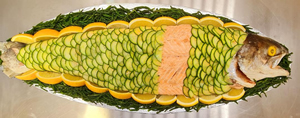 For that special occasion we can make up a Plateau de fruits de mer or Seafood platters and we can also cook and dress whole salmon. For prices and details of the salmon and seafood platters, please give us a call or have a look in the weekly newsletter.