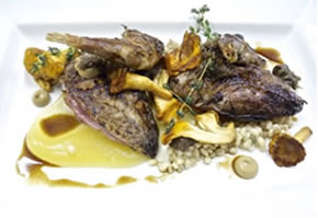 Roast grouse breasts, confit legs, liver pate’, barley and girolle risotto, fragola grape compote and Lambrusco wine sauce