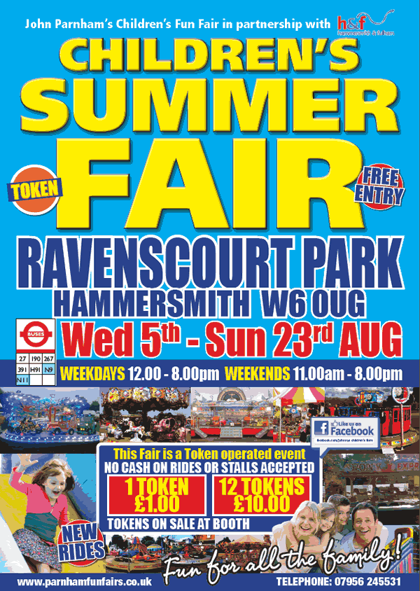 A children's summer funfair is to be held at Ravenscourt Park, Hammersmith, W6 0UG from