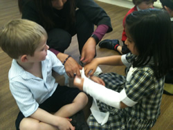 Student Romell Julian aged 10 said "It was soooo cool. I learnt that if I have a wound I would need to elevate it above my heart. I also listened to my own heartbeat through a stethascope and took my pulse, which was quite tricky. I now know how to put somebody in the recovery position"