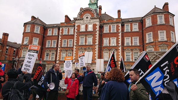The GMB union says that earlier this year it met with workers employed by French Multi National Contractor Sodexo over what many of them claim is their company’s reluctance to pay them the NHS pay increase and the insistence on paying minimum wage to many of the staff at the hospital.