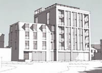 These proposals show a part four storey, part five storey building and seven storey building with 43 units and 27 car parking spaces.