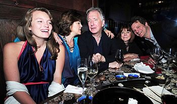 Colin Firth makes sure he gets into this photograph with Greta Scacchi, her daughter Leila and Alan and Rima Rickman at the aftershow party for The End of the Line