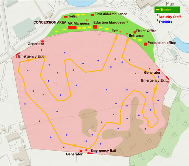 The event will take over much of the central area of the park which used to form the pitch and putt. The documentation appears to indicate that access will be retained to the café and museum and areas around the perimeter of the park.