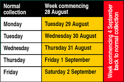 If you live in Ealing Borough you can find out about revised collection dates by e-mailing customers@ealing.gov.uk