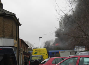 A huge black plume of smoke loomed over Brentford this morning following a serious fire at a factory on Layton Road.
