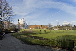 • The footbridge crosses the A4 at a slight angle and lands 5m further east from the corner of Sussex House. The earthmound in Furnivall Gardens is unchanged.