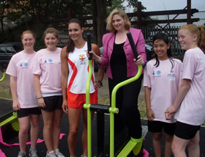 Mary Macleod, Member of Parliament for Chiswick, Brentford, Isleworth, Osterley and Hounslow joined Jenny Pacey – otherwise known as Enigma from SKY 1’s “Gladiators” show – at Gumley House Convent School to help launch School Sports Week.