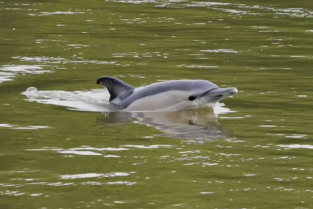 The dolphin swimming near Wandsworth Park last Thursday. Picture: BBC