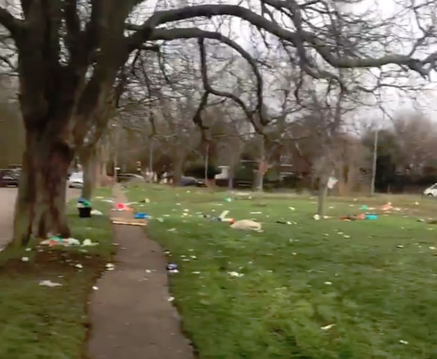 Rubbish strewn Ealing Common after New Year