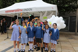 Dozens of schoolchildren joined the Mayor of Hammersmith and Fulham, Cllr Mercy Umeh in Lyric Square to celebrate the day, first established by the United Nations in 1981, which invites the whole world to commit and contribute to a culture of peace.