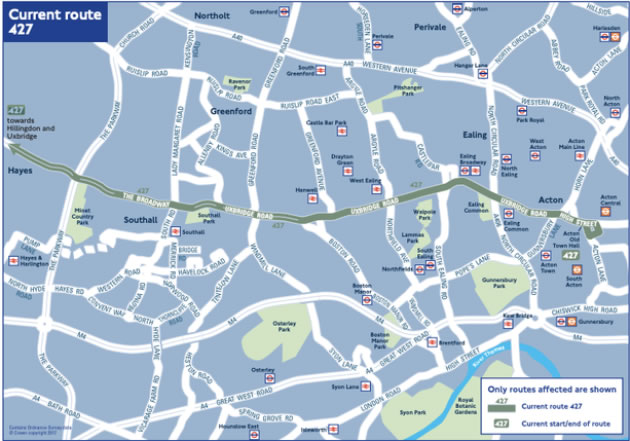 Bus services along the Uxbridge Road and Ealing and Acton have been reduced after TfL changed the route of the 427 bus.
